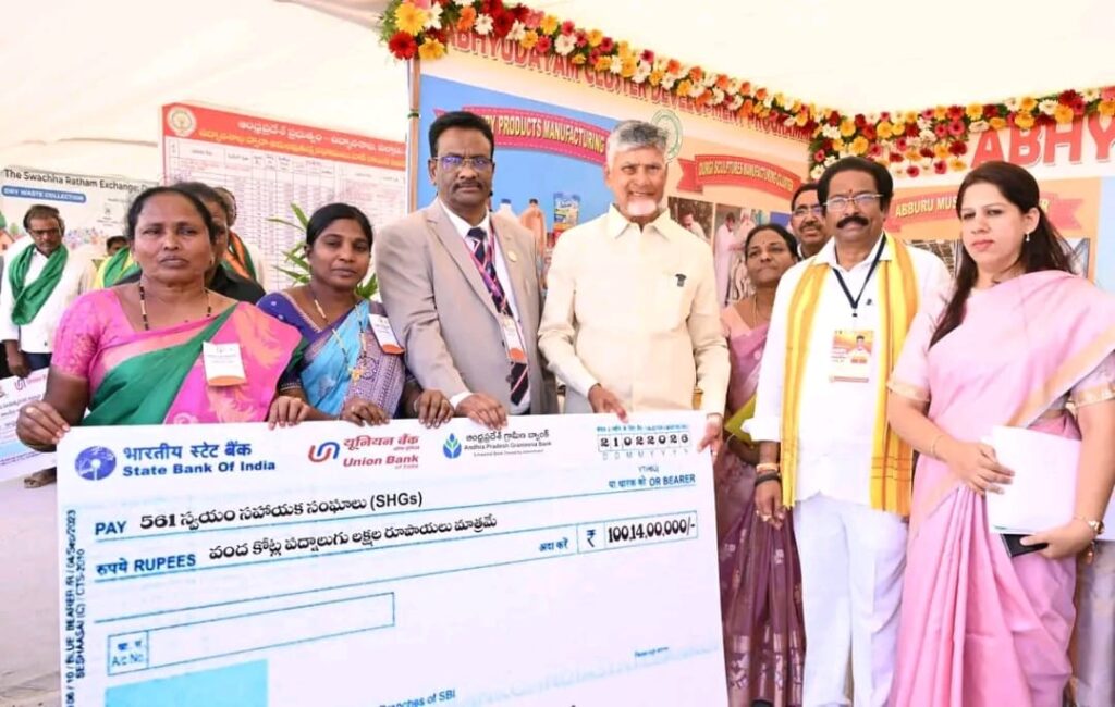 వినుకొండ, పల్నాడు జిల్లా:స్వచ్ఛాంధ్ర–స్వర్ణాంధ్ర కార్యక్రమంలో భాగంగా ముఖ్యమంత్రి నారా చంద్రబాబు నాయుడు వినుకొండలో స్వయం సహాయక సంఘాల మహిళలకు ఆర్థిక సహాయం అందజేశారు.ఈ సందర్భంగా మహిళా స్వయం సహాయక సంఘాలకు చెందిన సభ్యులకు బ్యాంకు రుణాల మంజూరు చెక్కును సీఎం చేతుల మీదుగా అందించారు. మొత్తం రూ.100.14 కోట్ల ఆర్థిక సహాయాన్ని 561 స్వయం సహాయక సంఘాలకు విడుదల చేసినట్లు అధికారులు తెలిపారు.మహిళలు ఆర్థికంగా స్వయం సమృద్ధి సాధించాలని ప్రభుత్వం పలు సంక్షేమ కార్యక్రమాలను అమలు చేస్తోందని సీఎం పేర్కొన్నారు. మహిళా సంఘాలు చిన్న వ్యాపారాలు ప్రారంభించి కుటుంబ ఆర్థిక స్థితిని మెరుగుపర్చుకోవాలని సూచించారు.
